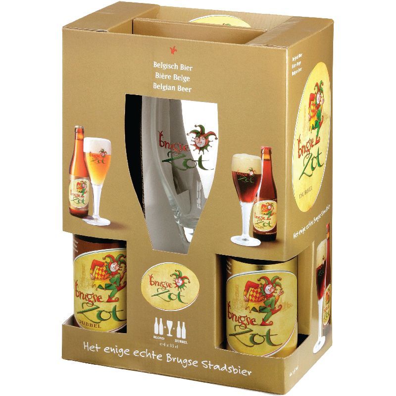 Met deze geschenkverpakking kun je genieten van zowel de Brugse Zot Blond als van de Brugse Zot Dubbel Bruin. Om ten volle van de smaak te kunnen genieten krijg je er ook nog een mooi Brugse Zot glas bij.
