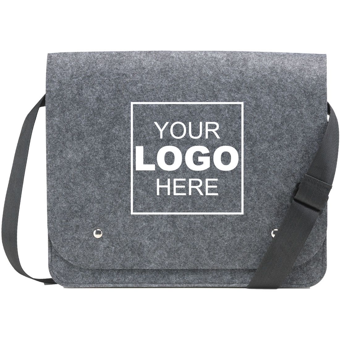 Schouder-/documententas van 3 mm RPET kwaliteitsvilt (gemaakt van gerecyclede PET-flessen). Met ruim hoofdvak, 2 magnetische drukknopen en verstelbare schouderriem