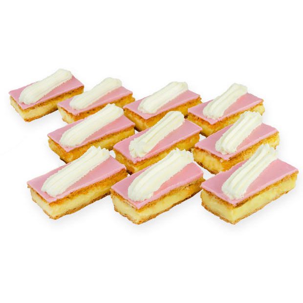 De traditionele tompoezen met roze fondant blijven natuurlijk heerlijk en zijn eenvoudig online te bestellen voor bezorging in heel Nederland. Krokant bladerdeeg, gevuld met de romigste banketbakkersroom en afgemaakt met een toefje verse slagroom. Maakt elk feest of presentatie compleet. Afbeelding erop? Geen probleem! Per 10 stuks. Let op! De tompoezen kunnen bedrukt worden met logo, dit is al bij de prijs inbegrepen.