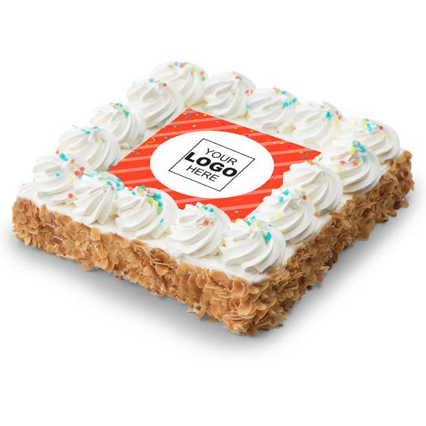 Bestel online deze heerlijke FEEST Slagroomtaart 10-12 personen en laat deze met afbeelding en of tekst door heel Nederland bezorgen. Gemaakt van zachte cake, romige slagroom en een frisse, fruitige vulling en versierd met suiker confetti. Let op! De taart kan bedrukt worden met logo/tekst, dit is al bij de prijs inbegrepen.