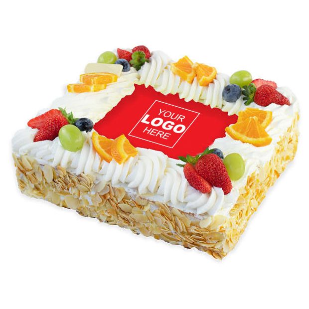 Verras iedereen met deze overheerlijke slagroomtaart en laat ‘m met je logo erop bezorgen in heel Nederland. Versierd met vers fruit en chocolaatjes. Gevuld met zachte cake, romige slagroom en een frisse, fruitige vulling maken deze taart tot een waar feest. Vanaf 10 personen. Let op! De taart kan bedrukt worden met logo, dit is al bij de prijs inbegrepen.