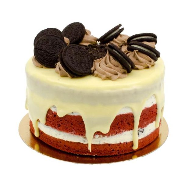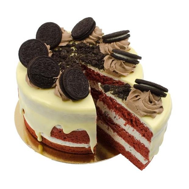Bestel vandaag nog deze heerlijke Oreo-Velvet Layer Cake en trakteer jezelf en de visite op een luchtige cake met een vulling gemaakt van slagroom en Oreo koekjes. De red velvet layer cake is omhuld met een crèmelaag van witte chocolade. De decoratie van Oreo koekjes en schaafsel maken de taart helemaal af. Vanaf 8 personen. Let op! De taart kan bedrukt worden met logo, dit is al bij de prijs inbegrepen.