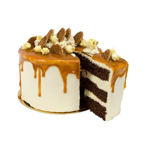De combinatie van stroopwafel en chocolade samengevoegd in een heerlijke Stroopwafel Layer Cake. Een typische Nederlandse Layer Cake door de mini stroopwafeltjes. De taart bestaat uit een chocolade cake en is gevuld met een chocoladecrème, afgewerkt met caramel, stukjes stroopwafel en popcorn. Voor 14 personen